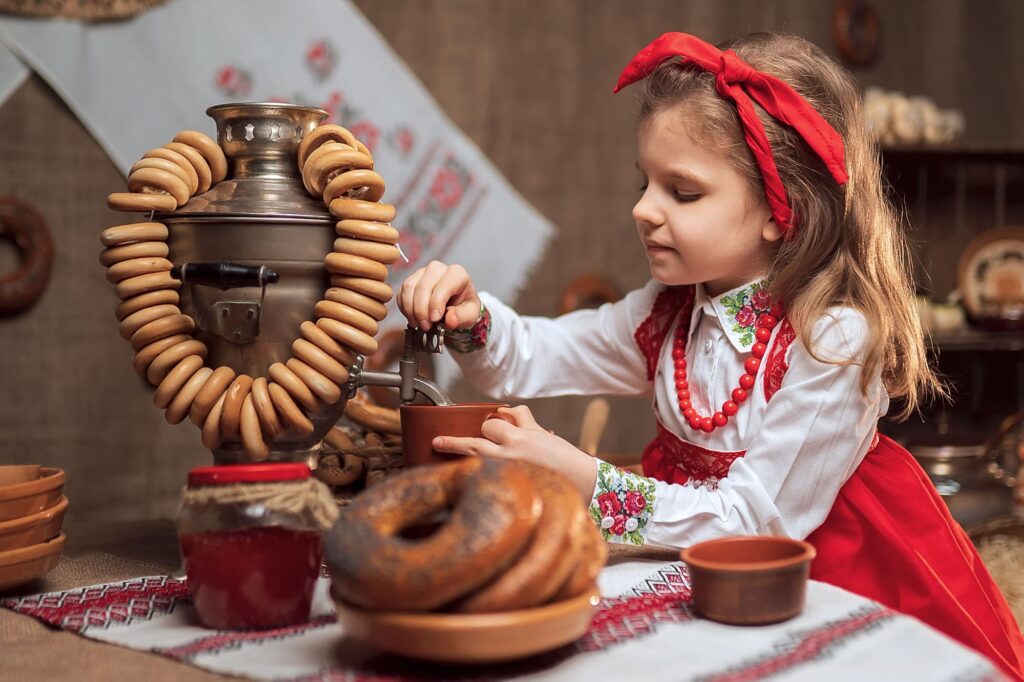 Tea drinking is a separate tradition. The samovar was the center of home feasting for centuries. The whole family gathered around it, jam, baranki (ring-shaped rolls), and pryaniki (gingerbread) were placed on the table. Tea was drunk for a long time, with conversations — there was no rush. If a Russian colleague offers you tea — this is not a formality. This is an invitation to talk.